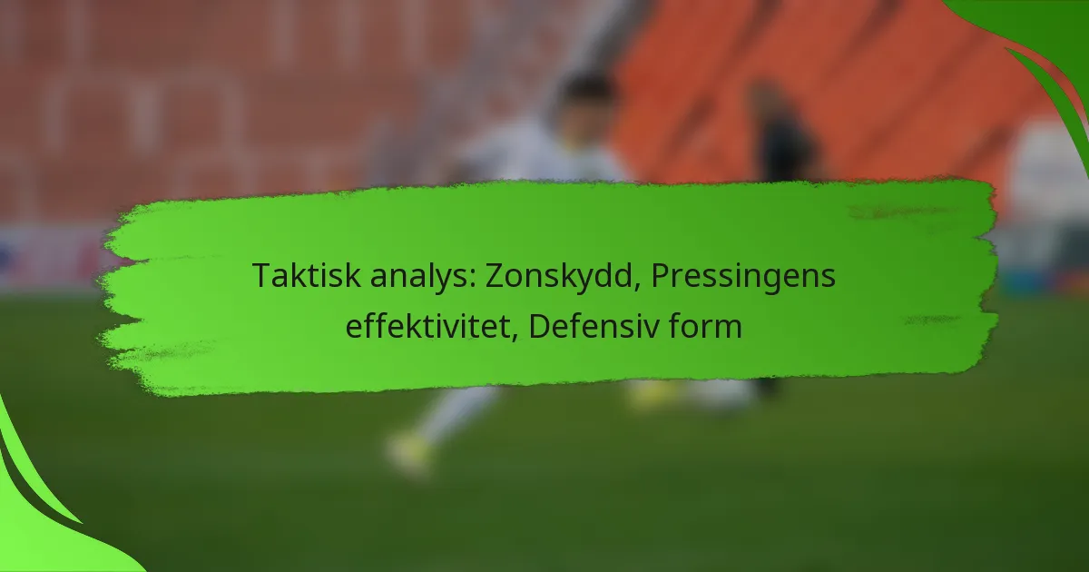 Taktisk analys av defensiva strategier såsom zonförsvar, pressens effektivitet och defensiv struktur är avgörande för att förstå ett lags prestation. Zonförsvar gör det möjligt för försvarare att förutse spel genom att täcka specifika områden, medan pressens effektivitet avgör hur aggressivt man engagerar sig när man är utan boll. Dessutom förbättrar en stark defensiv struktur kommunikationen och organisationen, vilket gör att lag kan anpassa sig till motståndarna och minimera målchanser.